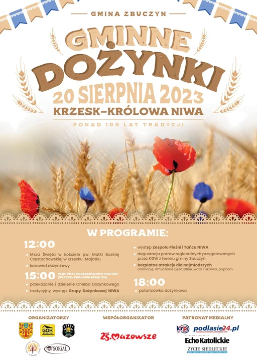 Dożynki rozpoczną się od mszy świętej w Krzesku-Majątku. Właściwe uroczystości wystartują o 15:00.