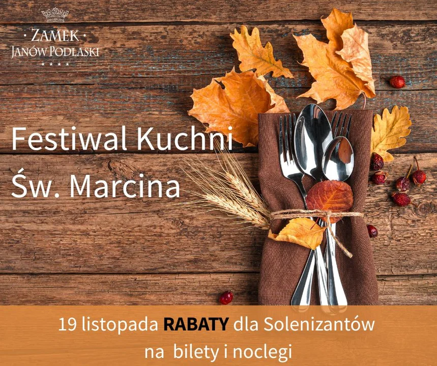 Standardowy bilet wstępu na imieninową biesiadę „Festiwal Kuchni Świętego Marcina” w dniu 19 listopada 2022 roku o godz. 19.00 kosztuje 30 pln. Gościom hotelowym obchodzącym imieniny w okresie 11.11 - 24.12 przysługuje zniżka, w ramach której cena pojedynczego biletu wyniesie 1 pln. Warunkiem skorzystania ze zniżki na bilet jest okazanie dowodu tożsamości i rezerwacja noclegu na następujących warunkach: