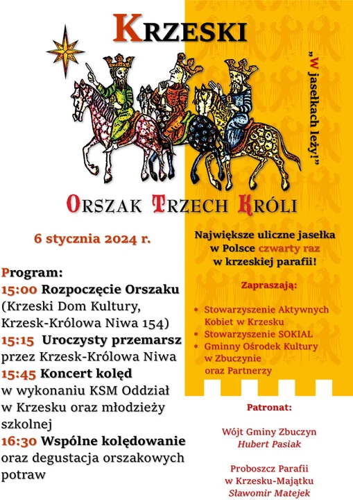 Po raz czwarty Orszak Trzech Króli odbędzie się w Krzesku. W tym roku pod hasłem "W jasełkach leży". Początek o 15:00.