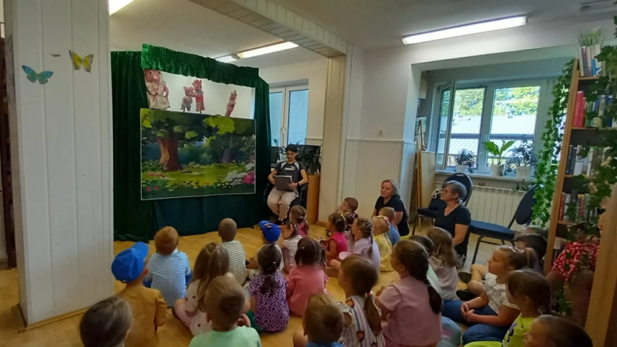 W środę, 18 czerwca 2025 roku w Gminnej Bibliotece Publicznej w Mokobodach odbył się ostatni spektakl teatru kukiełkowego pod tytułem „Trzy małe świnki”. W tym wyjątkowym wydarzeniu uczestniczyły dzieci z przedszkola oraz zerówki z Zespołu Szkolno-Przedszkolnego w Niwiskach.