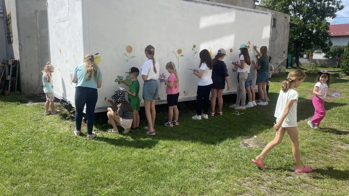 Dzięki wsparciu właścicieli sklepu Lewiatan w Kotuniu, projekt mógł zostać zrealizowany na dużej powierzchni, co dodatkowo pozwoliło na stworzenie prawdziwej, artystycznej przestrzeni. W tym twórczym procesie dzieciom towarzyszyły Panie Beata Końca oraz Agnieszka Miszczak, które z pełnym zaangażowaniem wspierały młodych artystów. Ich pomoc oraz nieoceniona energia przyczyniły się do tego, że mural stał się nie tylko dziełem sztuki, ale także wyrazem wspólnej zabawy i kreatywności.