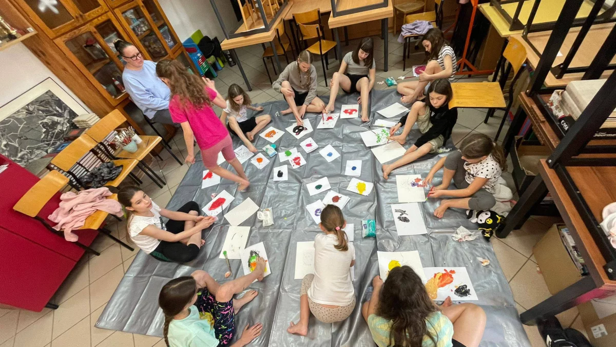 W Gminnej Bibliotece Publicznej w Kotuniu odbyły się nietypowe zajęcia plastyczne, podczas których uczestniczki mogły wykazać się niezwykłą kreatywnością. Dziewczynki malowały obrazy stopami – niektóre wyłącznie przy użyciu stóp, inne chwytając pędzelki palcami stóp. Powstały w ten sposób prace pełne kolorów, oryginalne i niecodzienne.