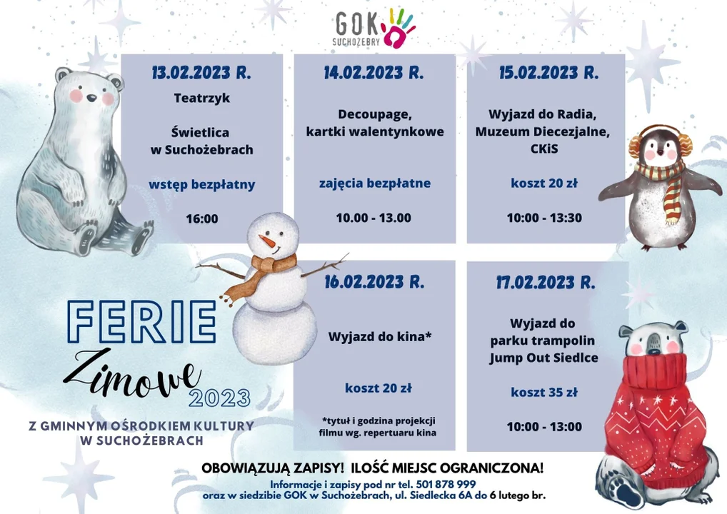 Na drugi tydzień ferii organizowanych przez Gminny Ośrodek Kultury w Zbuczynie można zapisać się jeszcze do 14 lutego.