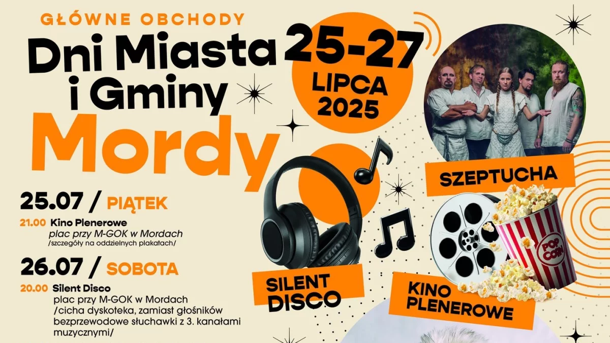 - 20.00 Silent Disco, plac przy M-GOK w Mordach - cicha dyskoteka, zamiast głośników bezprzewodowe słuchawki z 3. kanałami muzycznymi