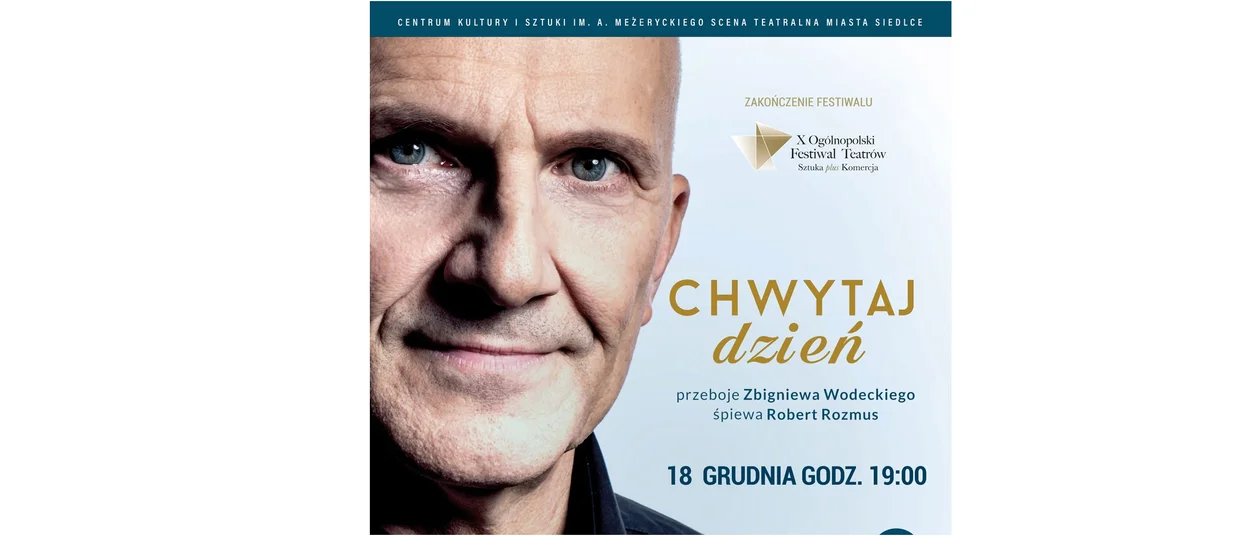 W spektaklu „Chwytaj dzień” Robert Rozmus – wykonując najsłynniejsze piosenki z repertuaru Zbigniewa Wodeckiego – wspomina te spotkania, przywołuje ludzi i miejsca. Prezentuje, nie tylko część bogatej twórczości Wodeckiego, wybitnego muzyka i kompozytora, ale także pokazuje go od bardziej prywatnej strony – jako świetnego kompana i przyjaciela, otwartego, skromnego człowieka, przemierzającego tysiące kilometrów, by nie zawieść swojej publiczności.