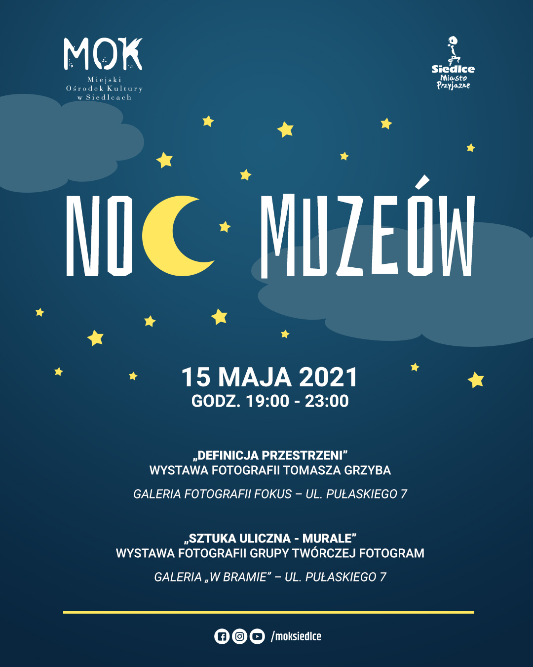 W tym roku MOK zachęca do zwiedzania dwóch wystaw fotografii: „Definicja przestrzeni” autorstwa Tomasza Grzyba w Galerii Fotografii Fokus i „Sztuka uliczna – murale” Grupy Twórczej Fotogram w Galerii „w Bramie”. Zapraszamy w godzinach 19:00-23:00.