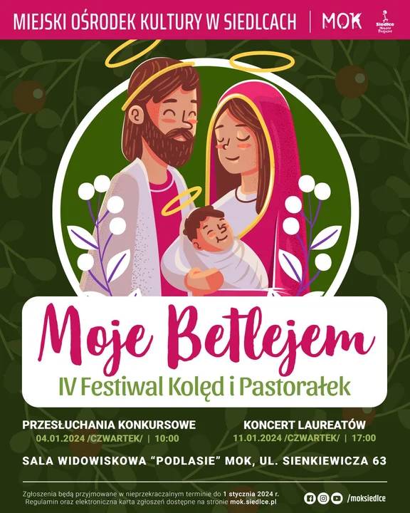 Kultura4 stycznia w sali widowiskowej Podlasie o 10.00 odbędzie się IV Festiwal Kolęd i Pastorałek ,,Moje Betlejem".