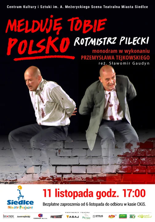 Kultura11 listopada o godz. 17:00 z okazji Narodowego Święta Niepodległości na Scenie Teatralnej Miasta Siedlce będzie można obejrzeć monodram pt. "Melduję Tobie Polsko - Rotmistrz Pilecki" w wykonaniu Przemysława Tejkowskiego.