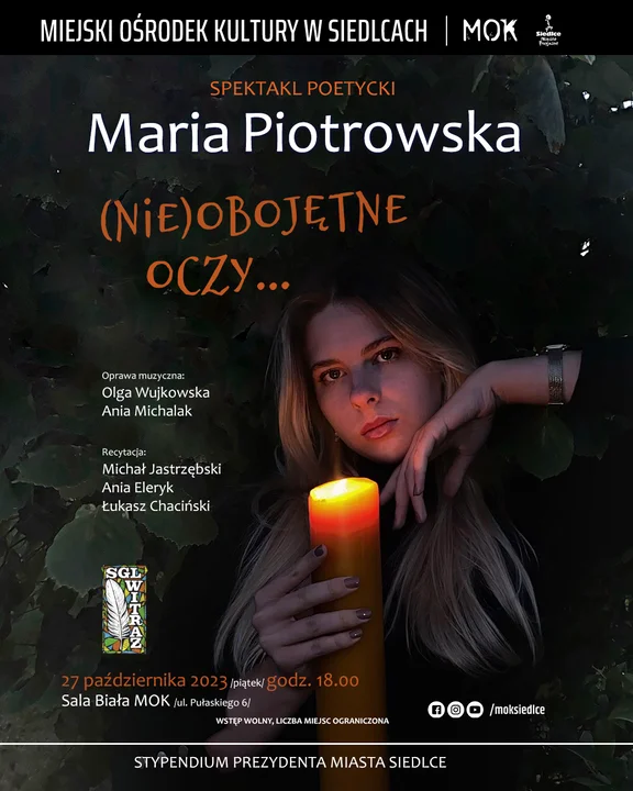 Kultura27 października o 18.00 w sali Białej MOK odbędzie się spektakl poetycki Marii Poetyckiej pod tytułem (Nie)obojętne oczy.