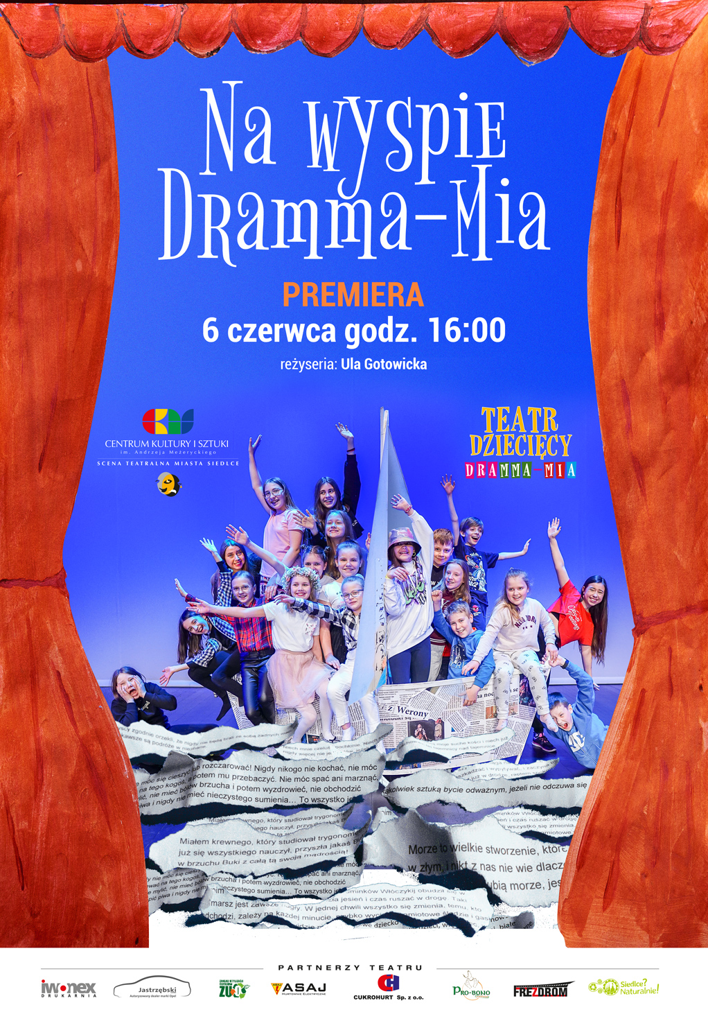 "Największą wartością spektaklu "Na wyspie Dramma-Mia" jest to, że w zdecydowanej większości składa się on z etiud, piosenek, tekstów, choreografii stworzonych albo samodzielnie wybranych przez dzieci. Wyskoczyły one z ich głów, wyłoniły się z ich marzeń, zmaterializowały na scenie. Moją rolą było połączyć te wszystkie pomysły i niejako przypudrować nosek zjawisku. Wychodząc na przeciw pragnieniu jednej z uczestniczek teatru, Natalki Głódź, powierzyłam jej nawet rolę reżyserki w rymowanej bajce mojego autorstwa "Czerwony Kapturek w pandemii". Natalka nie tylko pracowała z wielkim zaangażowaniem nad inscenizacją ze swoją grupą aktorów, ale także zadbała o kostiumy i rekwizyty. Koncepcję plakatu do spektaklu powierzyłam zaś Oldze Dzierżanowskiej, która z entuzjazmem podjęła się tego zadania. Widzę ogromny sens w kontynuowaniu takiego kierunku teatru dziecięcego - stwarzaniu coraz większej przestrzeni, by młodzi ludzie mogli doświadczać siebie jako twórcy w różnych dziedzinach, by mieli wpływ na to, co prezentują na scenie. Kochani Ludożercy, przyjmijmy ich z czułością." - Ula Gotowicka