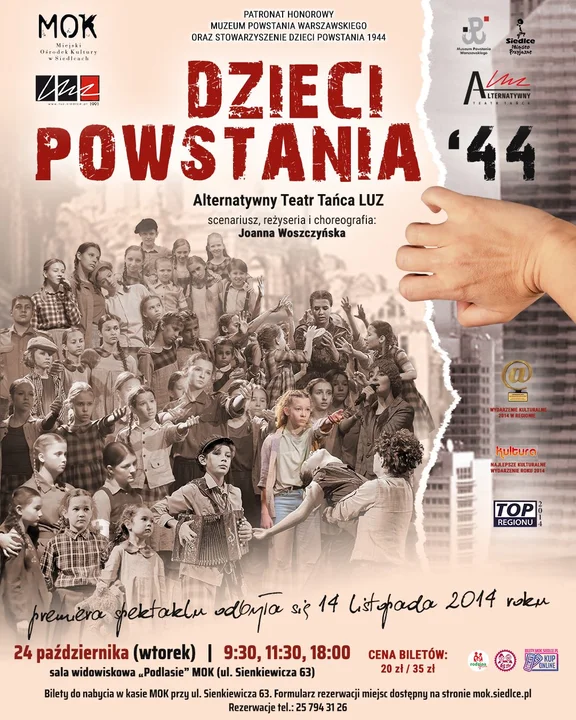 Spektakl „Dzieci Powstania ’44” w wykonaniu Alternatywnego Teatru Tańca LUZ to niesamowite i wzruszające widowisko musicalowe przenoszące widza w świat dzieci, którym wojna brutalnie przerwała dzieciństwo.