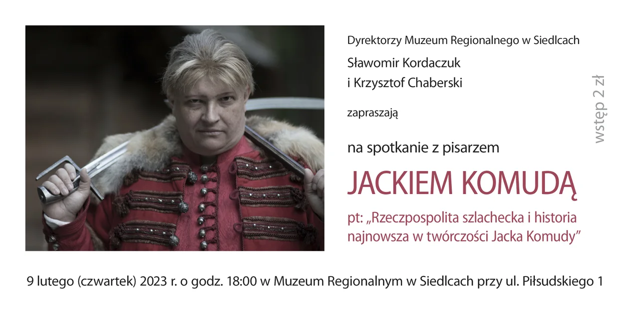 Tym razem pomysłodawca cyklu spotkań Krzysztof Chaberski zaprosił do Siedlec Jacka Komudę, jednego z najbardziej poczytnych obecnie pisarzy polskich. Spotkanie pt: „Rzeczpospolita szlachecka i historia najnowsza w twórczości Jacka Komudy" odbędzie się 9 lutego (czwartek) 2023 r. o godzinie 18:00.