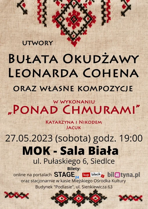 Kultura27 maja o 19.00 w Sali Białej MOK odbędzie się koncert zespołu Ponad Chmurami.