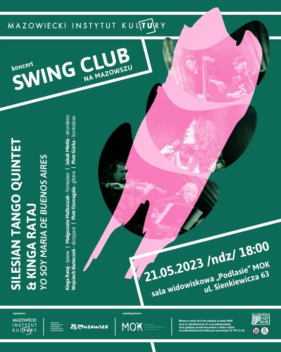 Kultura21 maja o 18.00 w sali widowiskowej Podlasie odbędzie się Swing Club na Mazowszu - koncert Silesian Tango Quintet & Kinga Rataj pt. ,,Yo Soy Maria de Buenos Aires".