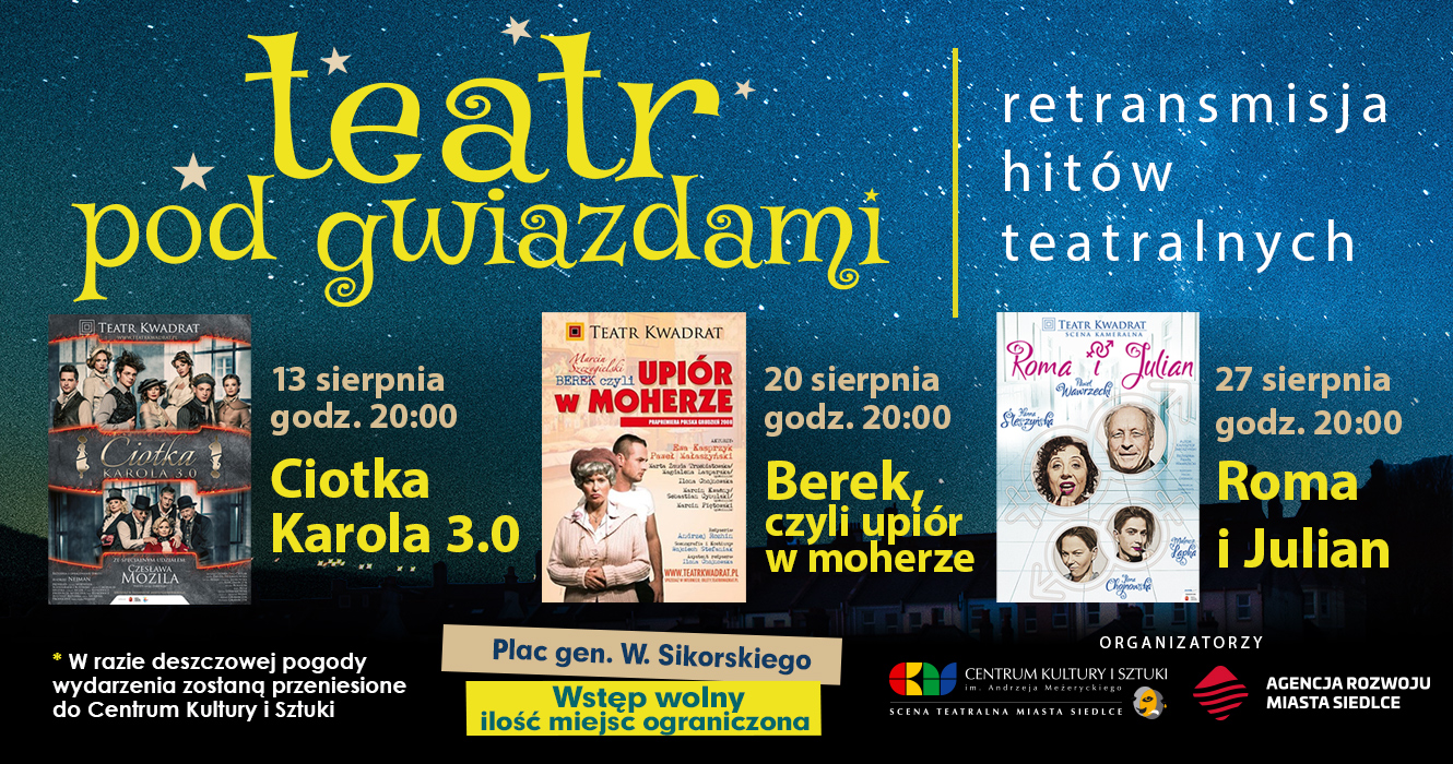 Wstęp wolny (liczba miejsc ograniczona). W razie deszczowej pogody wydarzenia przeniesione zostaną do Centrum Kultury i Sztuki.