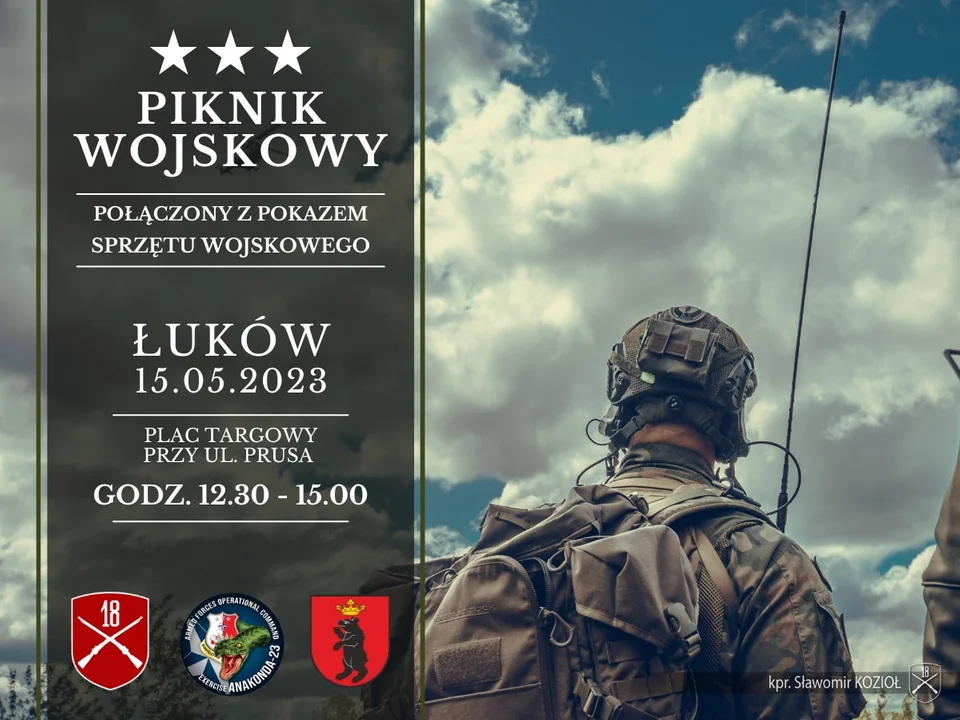 W Łukowie pojawią się m.in. wojskowi z 18 Dywizji Zmechanizowanej im. gen. broni Tadeusza Buka. Piknik połączony z pokazem sprzętu wojskowego, stanowi część odbywających się w kraju ćwiczeń Anakonda-23 i w odróżnieniu od działań szkoleniowych, jest dostępny dla widzów.