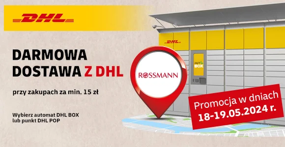 Po raz pierwszy od wprowadzenia akcji bezpłatnych dostaw wybór produktów jest tak szeroki! Każdy, kto w dniach 18 maja oraz 19 maja doda dowolny produkt dostępny w drogerii internetowej Rossmann o wartości min. 15 złotych aktywuje darmową dostawę do punktów DHL (punkty DHL POP: Automaty POP BOX lub w punkty partnerskie) na cały koszyk zakupowy.