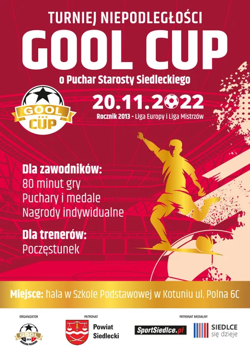 W turnieju wezmą udział Akademia Piłkarska AMP GOOL Kotuń, Olimp Stok Lacki - Szkółka Piłkarska, Fundacja Wspierania Sportu i Nauki Koliber Team, Akademia UKS Naprzód Skórzec, Mościbrody Akademia MKP Pogoń Siedlce oraz Tajfun JarMet Jartypory.