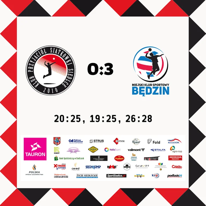W pierwszych dwóch setach meczu rozgrywanego wyjątkowo na hali przy ZSP nr 3 MKS kontrolował wydarzenia na parkiecie, górując wyraźnie w końcówkach. W trzeciej partii będzinianie musieli spiąć się, aby wygrać, ale ostatecznie zrobili co do nich należało i wyjechali z Siedlec bez strat własnych.