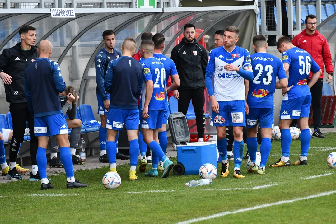 Biało-niebiescy przystępowali do meczu poważnie osłabieni. Braki w postaci absencji Damiana Nowaka i Michała Rutkowskiego były odczuwalne. Pierwsze minuty upłynęły na wzajemnym badaniu sił. Pogoniści próbowali coś zdziałać w ofensywie, ale nie bardzo im to wychodziło. Więcej było indywidualnych prób niż zespołowych. W końcówce pierwszej połowy Siarkowcy objęli prowadzenie za sprawą Dawida Bałdygi.