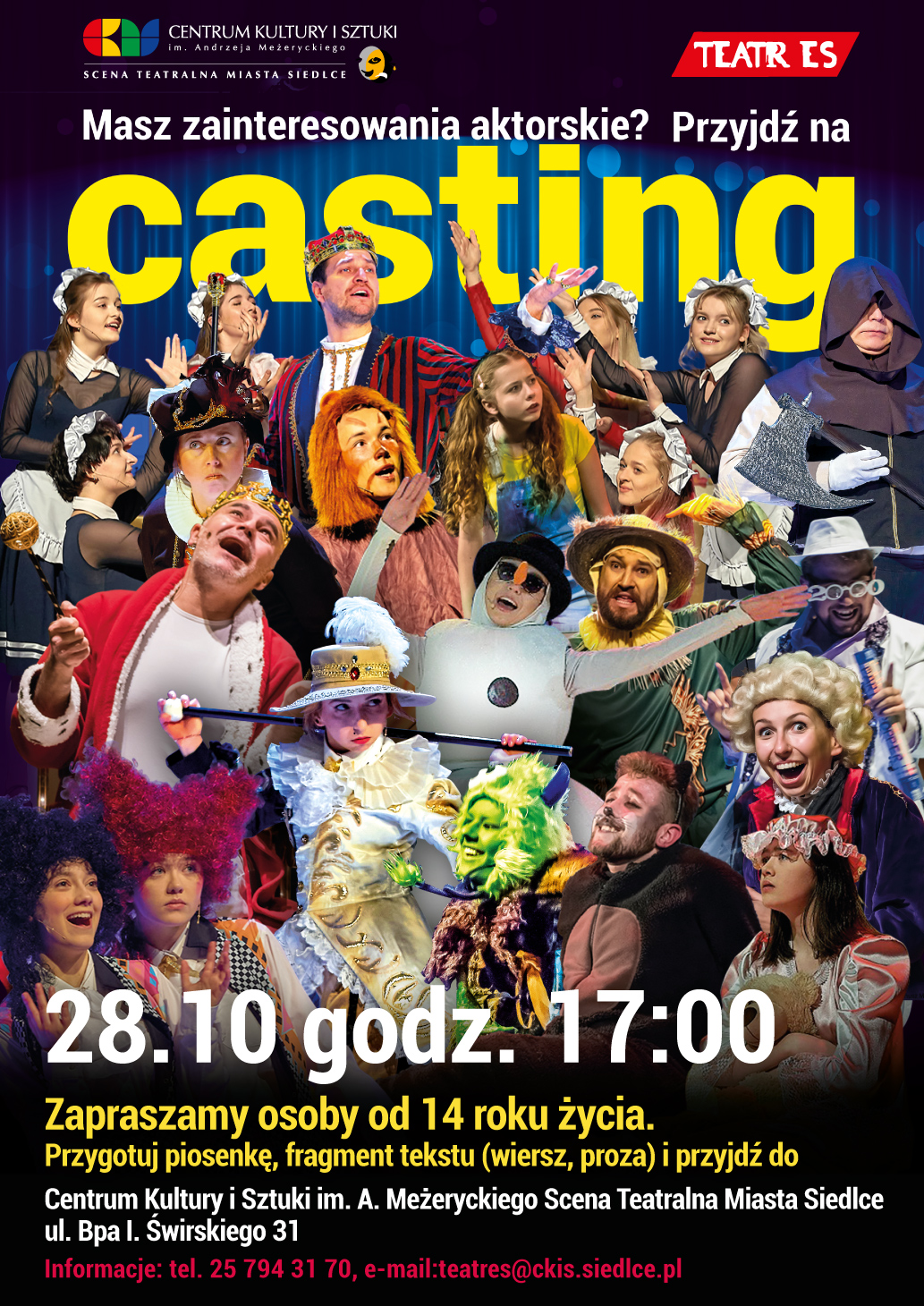 Więcej informacji: tel. 25 794 31 86, e-mail: teatres@ckis.siedlce.pl