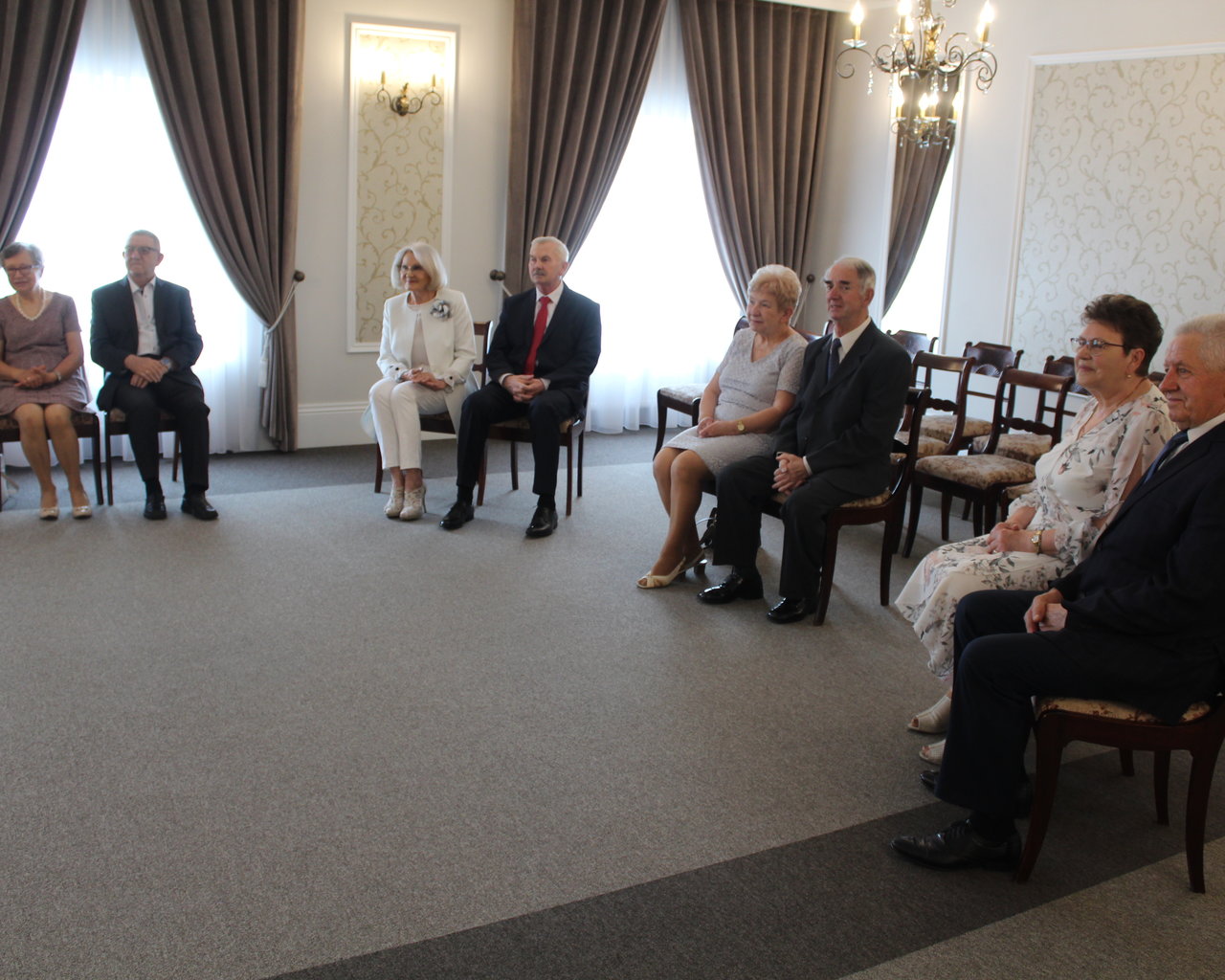 Aktu dekoracji, wręczenia listów gratulacyjnych, kwiatów i upominków dokonał Prezydent Miasta Siedlce Andrzej Sitnik w towarzystwie kierownika Urzędu Stanu Cywilnego Andrzeja Leszkowicza.