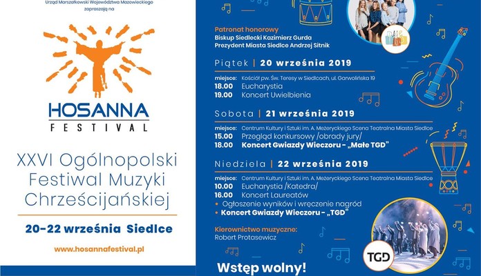 Ogólnopolski Festiwal Muzyki Chrześcijańskiej „Hosanna Festival” to impreza od ponad 25 lat organizowana w Siedlcach. Za główny cel, obok upowszechniania szeroko pojętej kultury, kształtowania gustów i wrażliwości muzycznej, festiwal stawia sobie równie ambitne zadanie formowania młodego pokolenia Polaków otwartego na wartości chrześcijańskie i ogólnoludzkie. Jest także okazją do promocji oraz wspierania utalentowanych zespołów i solistów muzyki chrześcijańskiej z całej Polski.