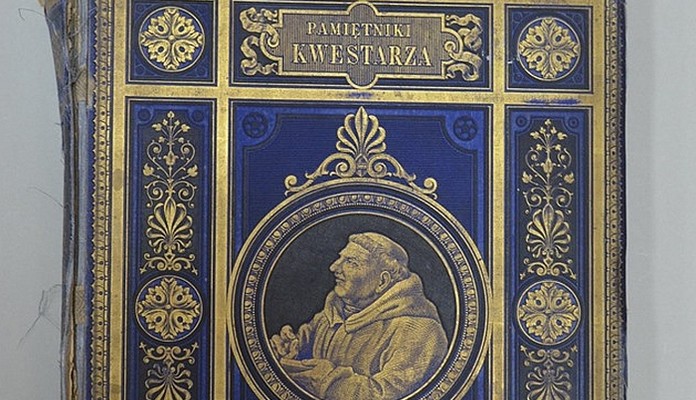 Jak pisze w intermecie siedlecka MBP, książka urzeka twardą oprawą wydawniczą z epoki (niebieskie płótno bogato zdobione złoceniami i tłoczonymi elementami barwionymi na czarno, w owalu widoczna złocona podobizna tytułowego kwestarza, obcięcia kart złocone, wyklejki wewnątrz książki z opalizującej mory).