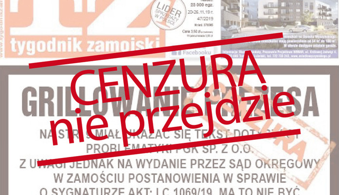 W listopadzie w Zamościu doszło do wstrząsającej sytuacji: Sąd Okręgowy uznał, że ważniejsze jest dobre samopoczucie osób publicznych i miejskiej spółki, niż prawo mieszkańców do informacji. Nałożył na Tygodnik Zamojski 11-miesięczny zakaz publikacji na temat działalności Przedsiębiorstwa Gospodarki Komunalnej w tym mieście. Nakazał także usunięcie dotychczas opublikowanych tekstów ze strony internetowej.