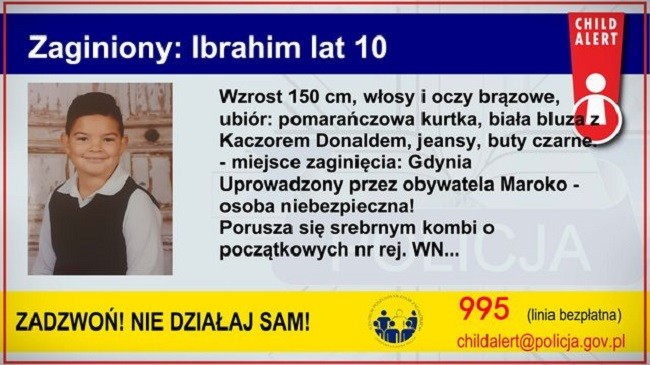 Policjanci poszukują 10-letniego Ibrahima, uprowadzonego przez obywatela Maroka.
