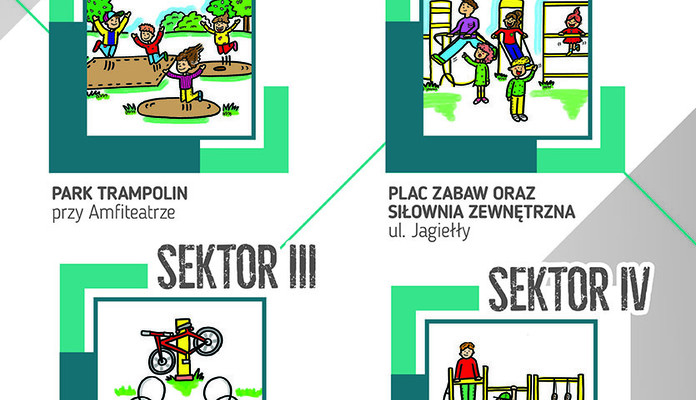 - Sektor II – Placzabaw oraz siłownia zewnętrzna przy ul. Jagiełły,