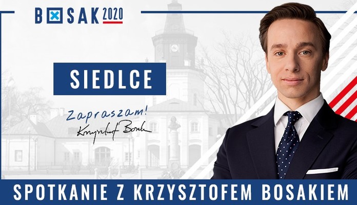 Spotkanie z kandydatem na urząd Prezydenta RP, Krzysztofem Bosakiem odbędzie się w piątek 6 marca o godzinie 18:00 w Sali Białej MOK w Siedlcach.