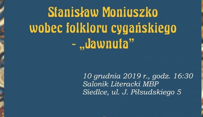 Z tej okazji siedlecki oddział Towarzystwa Literackiego im. Adama Mickiewicza oraz Miejska Biblioteka Publiczna w Siedlcach zapraszają na wykład dr hab. Agaty Seweryn z Katolickiego Uniwersytetu Lubelskiego „Stanisław Moniuszko wobec folkloru cygańskiego – JAWNUTA”.