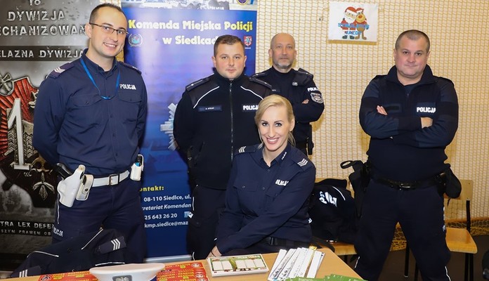 Stoisko policyjne miało na celu promocję bezpieczeństwa w ruchu drogowym, a hasłem przewodnim była nazwa kampanii "Odblaski to nie obciach". Dzieci za przestrzeganie przepisów podczas przejażdżki na symulatorze jazdy motocyklem otrzymywały elementy odblaskowe. Nie zabrakło również naszych czworonożnych funkcjonariuszy, którzy pod bacznym okiem mundurowych zademonstrowali swoje umiejętności.