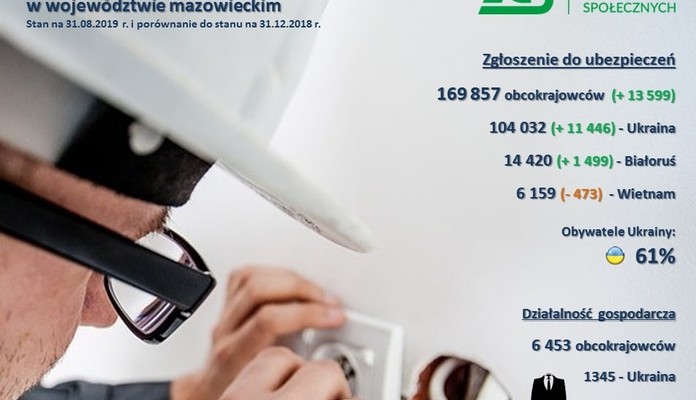 Tak wynika z danych Zakład Ubezpieczeń Społecznych w naszym województwie. 31 grudnia 2018 r. było ich 156,3 tys., a pod koniec sierpnia - niemal 170 tys. Odnotowany wzrost wskazuje, że wysoki popyt na pracowników w Polsce wciąż skłania do poszukiwania ich wśród obywateli innych państw i, co ważne, oferowania im legalnego zatrudnienia. Dzięki temu składki obcokrajowców zasilają Fundusz Ubezpieczeń Społecznych, a w przyszłości będą mieć oni prawo do otrzymywania świadczeń.