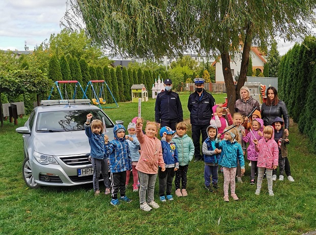 Dzieciaki były bardzo zadowolone z wizyty mundurowych . Na koniec każdy przedszkolak otrzymał od policjantów odblas.