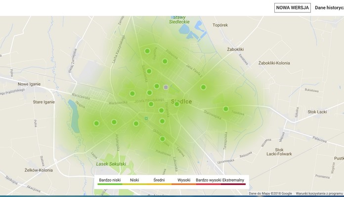 Obok 14. nowych czujników oraz istniejącej stacji pomiarowej na ul. Konarskiego, dodatkowa stacja funkcjonuje na obiekcie PEC przy ul. 10 Lutego. Dzięki zainstalowaniu nowych czujników - będzie ich w sumie w Mieście 17 (14. w przedszkolach, jeden prywatny, istniejący na Konarskiego i 1 PE na 10 Lutego - przyp. aut.). Siedlce stają się tym samym najlepiej opomiarowanym miastem w Polsce.