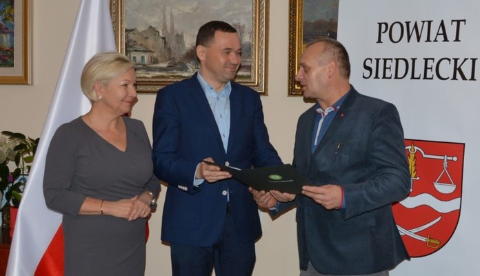 Starosta siedlecki Karol Tchórzewski i wicestarosta Małgorzata Cepek podpisali umowę na wykonanie trzech zadań z Przedsiębiorstwem Robót Drogowych „Regionalne Drogi Podlaskie”. Wszystkie wymienione inwestycje otrzymają 80% dofinansowania z Funduszu Dróg Samorządowych.