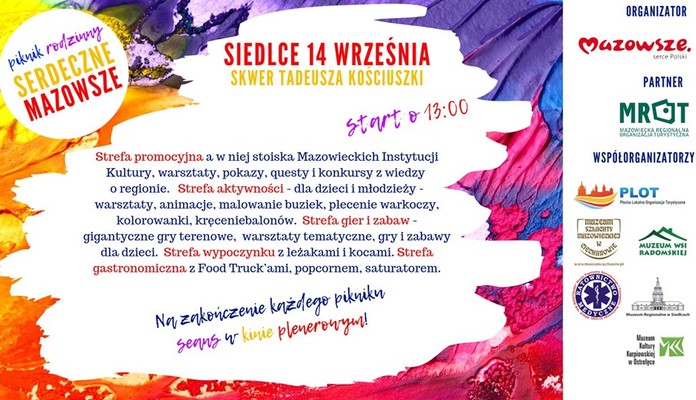 „Serdeczne Mazowsze” to seria pikników organizowanych w 5 miastach Mazowsza. Pierwszy z nich odbył się 7 września w Radomiu. 21 września akcja odwiedzi Stary Rynek w Płocku, 22 września - Zamek Książąt Mazowieckich w Ciechanowie, a 28 września - teren wokół Mauzoleum bitwy pod Ostrołęką.