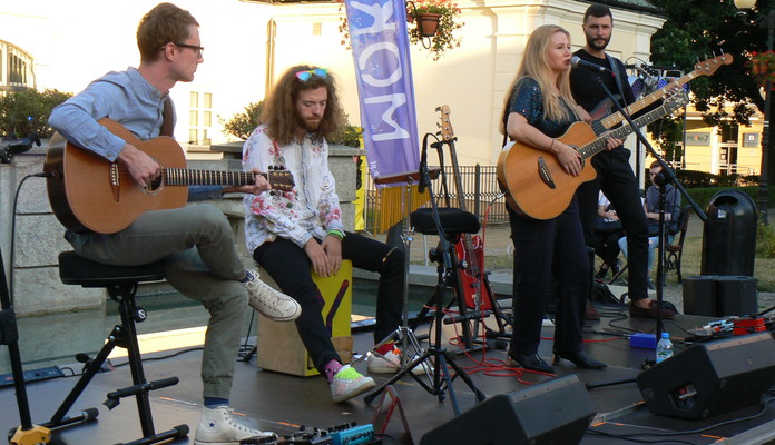 Tym razem na skwerze przy fontannie obok siedziby Miejskiego Ośrodka Kultury wystąpiła Ela Dębska - wokalistka, gitarzystka, kompozytorka i autorka tekstów. Artystce towarzyszyli: Maciej Knop (gitara), Żenia Betliński (bas) i Filip Laszuk (cajon i instrumenty perkusyjne).
