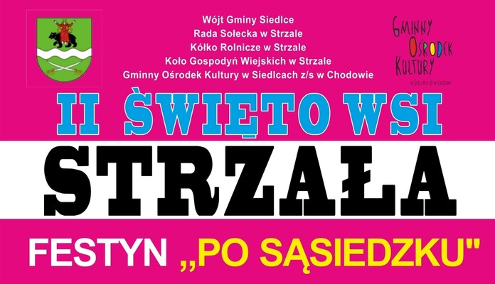 Na imprezę zapraszają: wójt Gminy Siedlce, Rada Sołecka w Strzale, Kółko Rolnicze w Strzale, Koło Gospodyń Wiejskich w Strzale i Gminny Ośrodek Kultury w Siedlcach z/s w Chodowie.