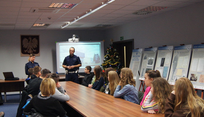 Zapoznanie z codzienną służbą policjantów to temat przewodni wycieczki siódmoklasistów ze Szkoły Podstawowej w Mordach, którzy w dniu dzisiejszym odwiedzili naszą Jednostkę.
