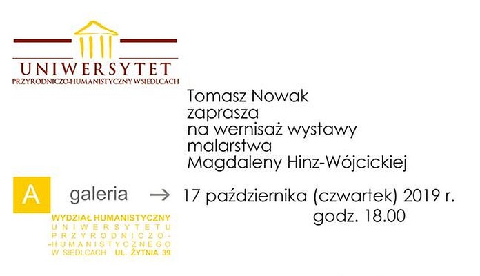 Wernisaż rozpocznie się 17 października o godz. 18.00 w „A Galerii” w siedzibie Wydział Humanistycznego Uniwersytetu Przyrodniczo-Humanistycznego w Siedlcach (ul. Żytnia 39).