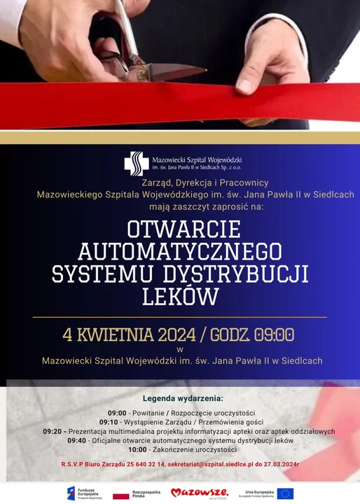 Z okazji wprowadzenia automatycznego systemu dystrybucji leków przez Mazowiecki Szpital Wojewódzki im. św. Jana Pawła II w Siedlcach odbędzie się uroczystość.