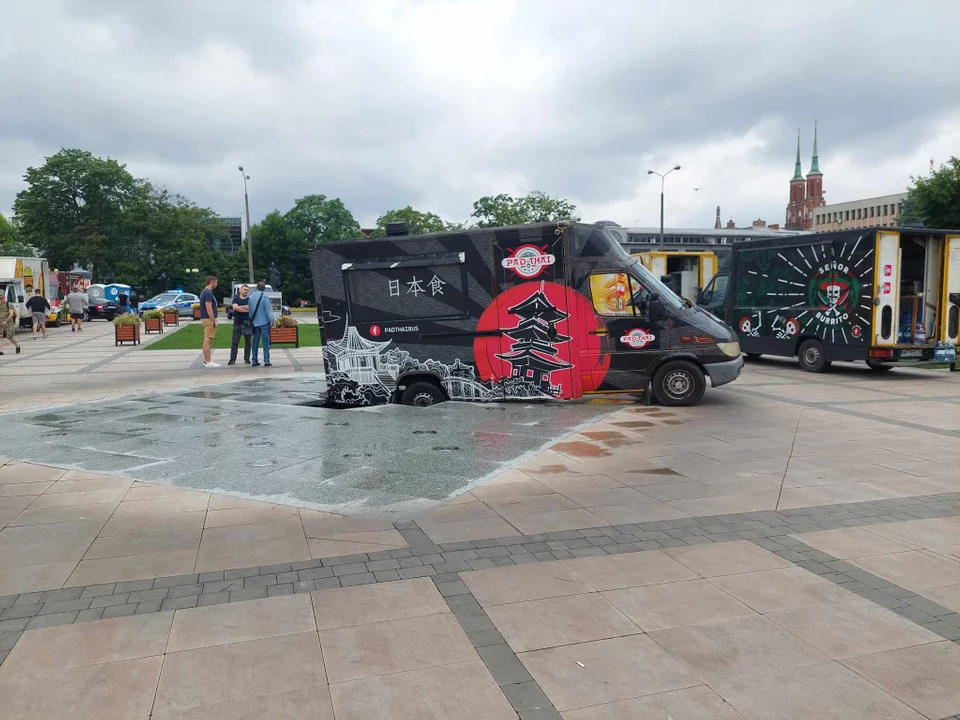 Fontanna na placu Sikorskiego uszkodzona. Wjechał w nią foodtruck