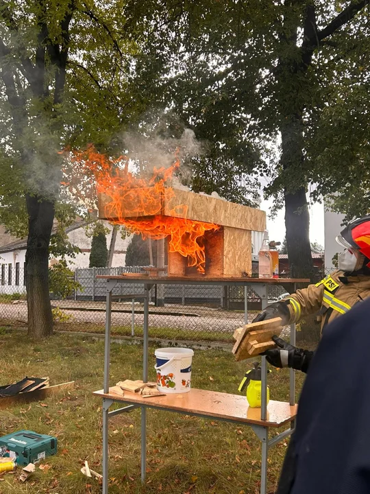 Zakończeniem warsztatów był pokaz wzrostu pożaru z wykorzystaniem modelu „domku dla lalek”, prezentujący dynamikę zagrożenia i znaczenie właściwej oceny sytuacji.