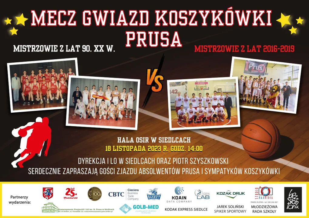 Dyrekcja I LO w Siedlcach i Piotr Szyszkowski serdecznie zapraszają profesorów, absolwentów, uczniów, przyjaciół Prusa i sympatyków koszykówki na Mecz Gwiazd Koszykówki Prusa.