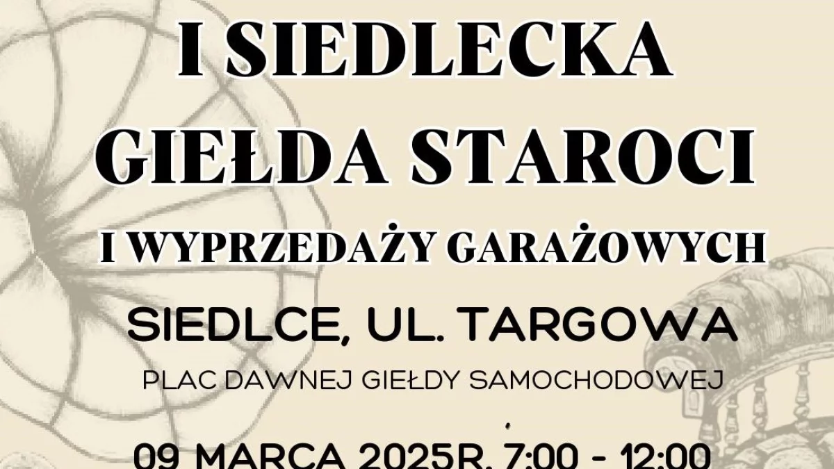 I Siedlecka Giełda Staroci i Wyprzedaż Garażowa zapowiada się jako interesujące wydarzenie, które może na stałe wpisać się w kalendarz lokalnych imprez. Szczegóły na plakacie poniżej.