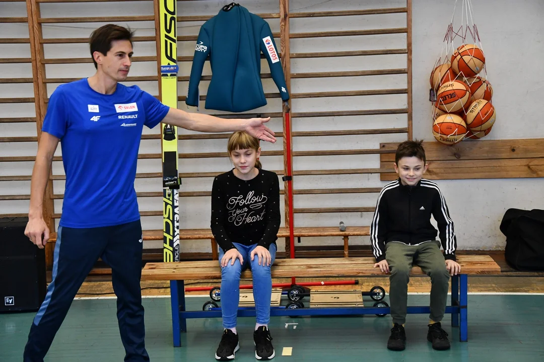 Jakub Kot ma doświadczenie w pracy z dziećmi i młodzieżą, ponieważ jest trenerem w SMS Zakopane. W trakcie wyjątkowej lekcji wychowania fizycznego zaprezentował uczniom Ósemki podstawowe ćwiczenia wykonywane przez adeptów skoków narciarskich, zaprezentował sprzęt niezbędny każdemu skoczkowi oraz wyjaśnił przepisy jakich muszą przestrzegać reprezentaci Polski z Kamilem Stochem na czele.