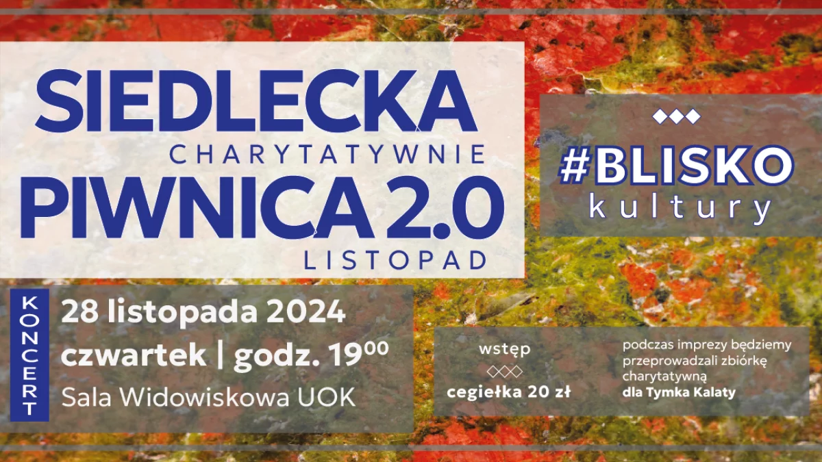 Siedlecka Piwnica to muzyczne spotkania siedleckich (ale nie tylko) artystów, jedyna w swoim rodzaju okazja do dzielenia się twórczością. Każdy z wykonawców prezentuje dwie, trzy piosenki. Wystąpią między innymi: Artyści Studenckiego Klubu Piosenki UwS pod kierownictwem Natalii Parapury - Amelia Bieniek, Daria Pertenko, Tatsiana Khmialniskaya, Amelia Rostkowska, Mateusz Pietrzak, Patrycja Szymkowiak, Mateusz Salach, Rafał Czapla Czapliński, Tadeusz Goc, Maciej Turkowski, Ola Jagieło, Mateusz Chomka, Tom Malcolm, Tomek Salach (lista artystów będzie aktualizowana).